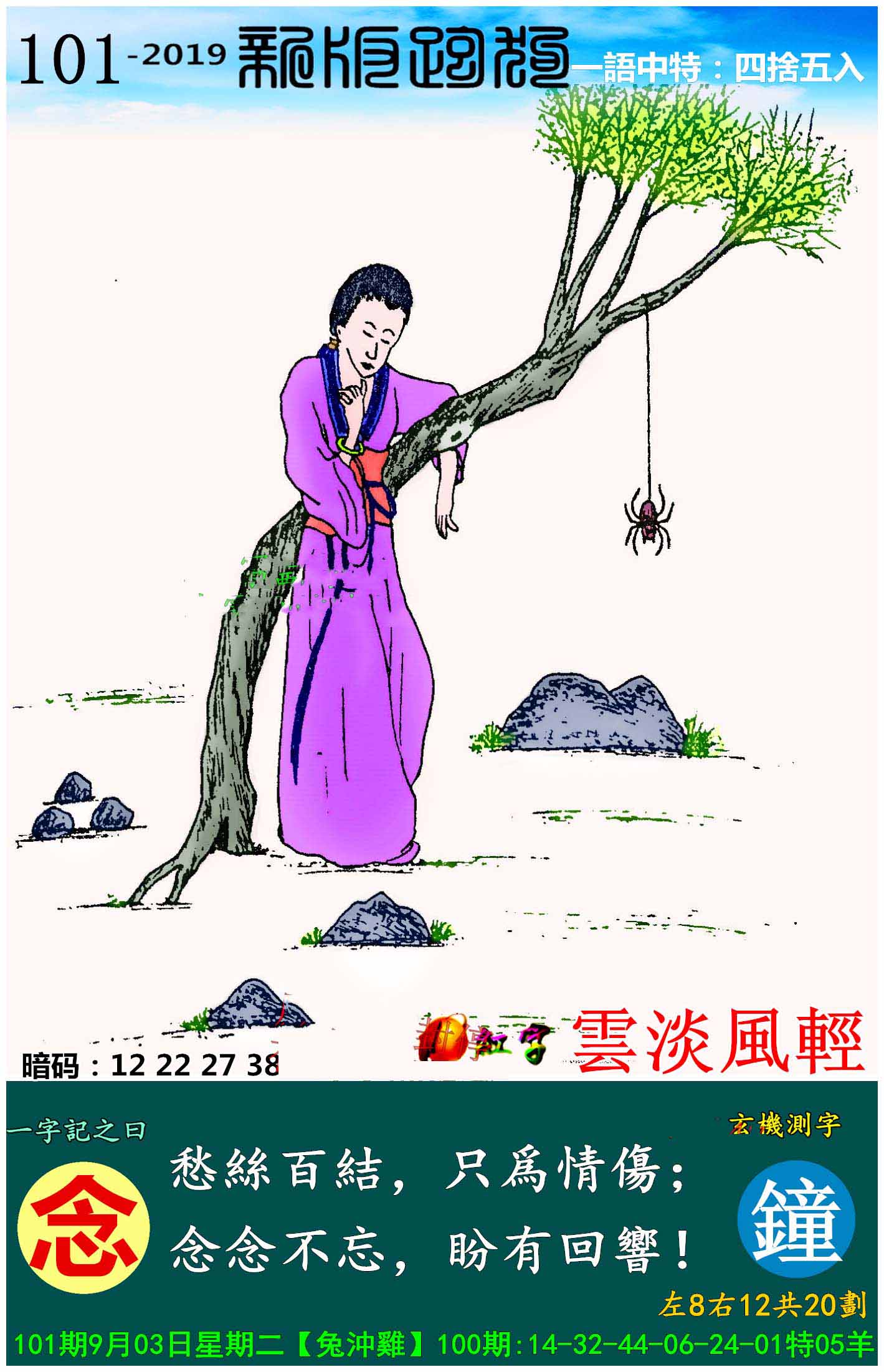 主题 : 101期:新版跑狗一字記之曰【念】玄機測字:《鐘》