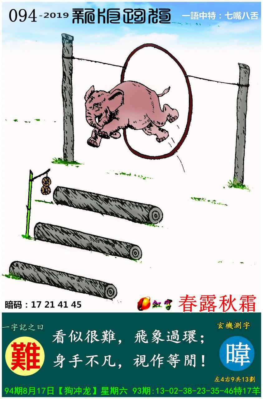 主题 : 094期新版跑狗一字記之曰:【難】 看似很難,飛象過環; 身手不凡,視作等閒!