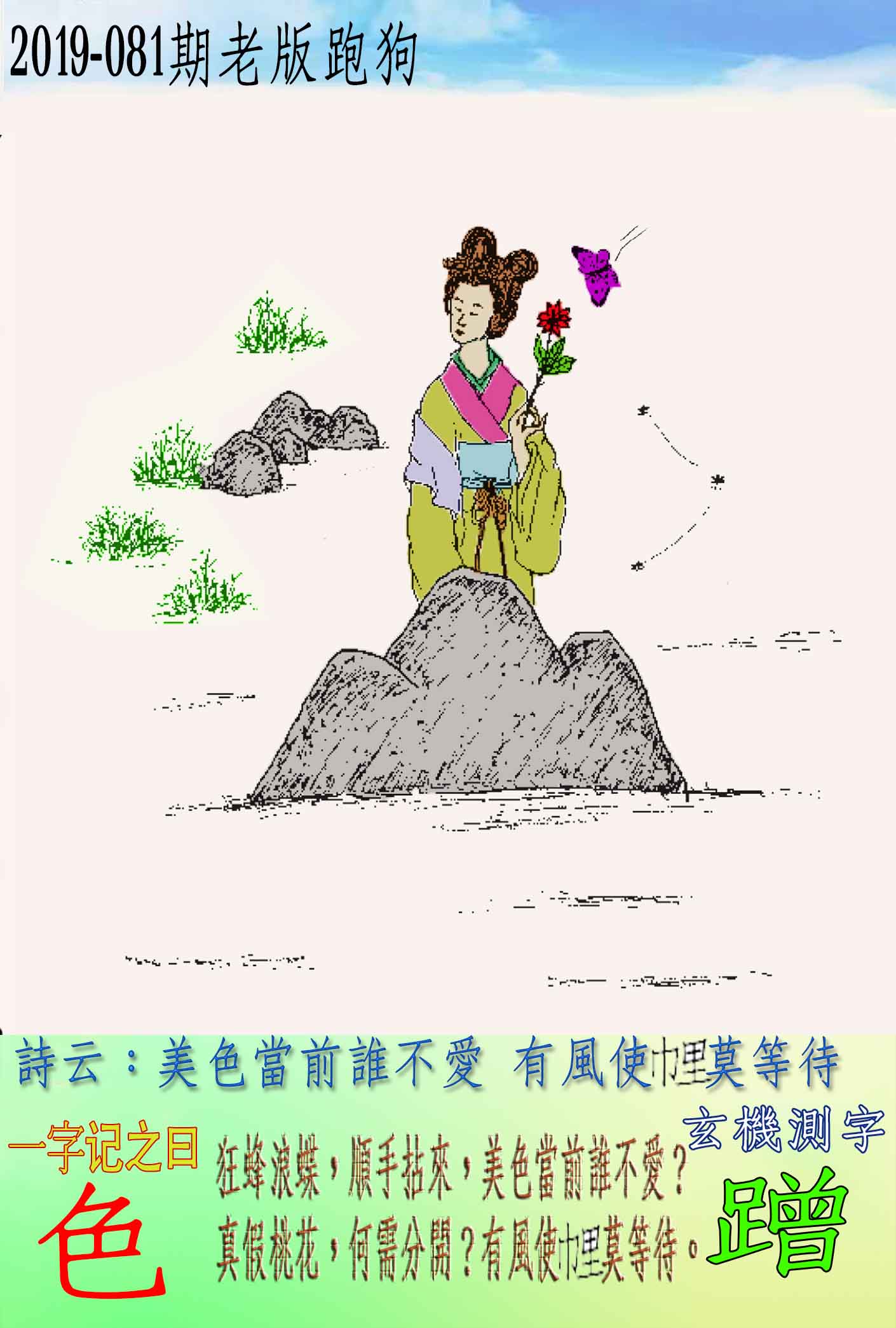 081期老版跑狗一字記之曰:【色】 詩雲:美色當前誰不愛,有風使巾里莫等待。