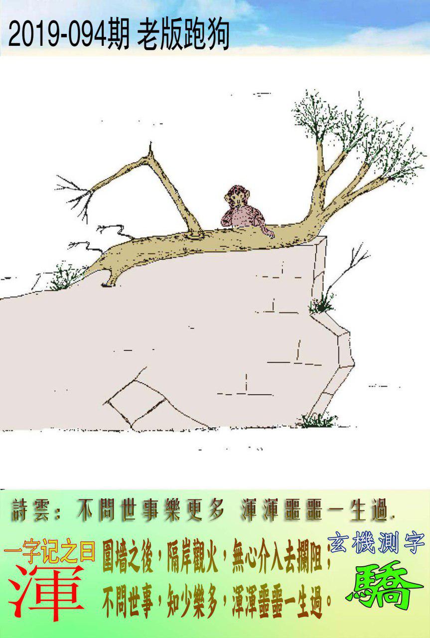 094期老版跑狗一字記之曰:【渾】 詩雲:不問世事樂更多,渾渾噩噩一生過。