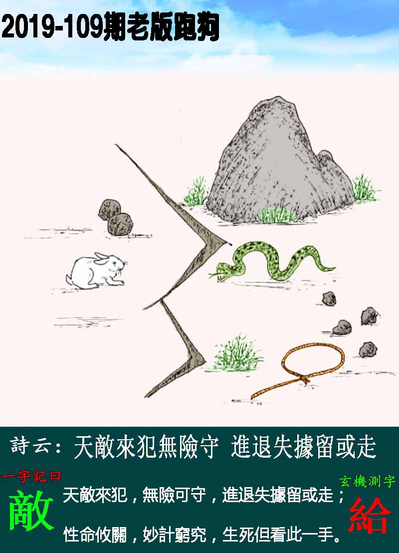 主题 : 109期老版跑狗一字記之曰:【敵】玄機測字:《給》