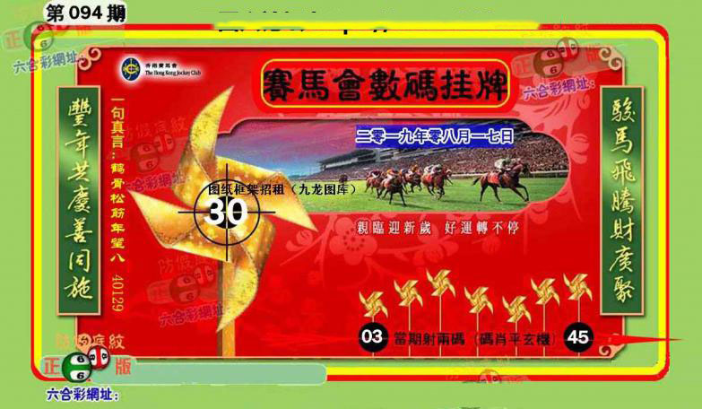 094期开奖时间2019年08月17日(星期六)晚9:30开(农历七月十七 狗冲龙)