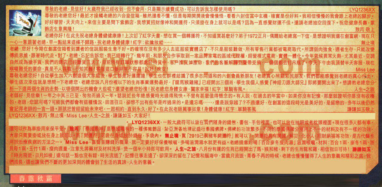 【1】尊敬的老總,見信好!太歲符我已經收到,但不會用,只是顯示續費成功,可以告訴我怎樣使用嗎? --- LYQ1236XX
