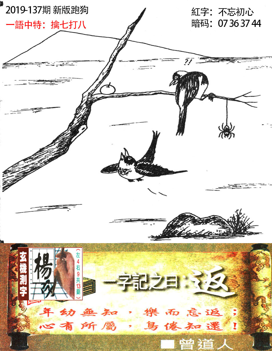 主题 : 137期:新版跑狗一字記之曰【返】玄機測字:《揚》