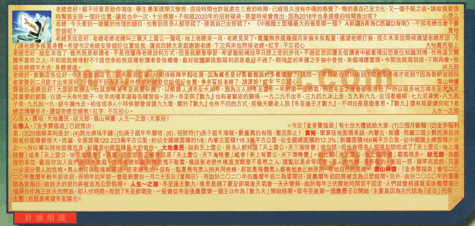 【4】.老總您好,給您來信了,雖然我是新讀者,不是很懂得老總放料方式,但是我願意學習,希望勤能補拙早日趕上您的步伐。不過從您回覆去信讀者中能看得出您是位知識淵博、性格溫文爾雅不喜怒之人,不知道我猜得對不?請您多給我這種新讀者登信機會,最好能簡單送點福利那是最好不過了,期待您的幸運之手抽中登信,來個鴻運當頭。今期信就寫到這,下期再會。祝福老總豬年大吉,身體健康。 狀元郎